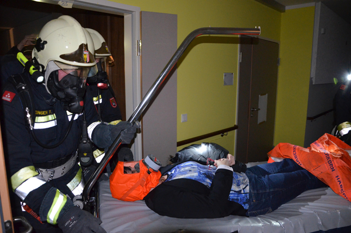 Bei diesem Gebäude ist insbesondere darauf zu achten, dass es sich bei den zukünftigen Bewohnern um meist kranke, ältere und vor allem bettlägerige Personen handelt. Am Einsatzort angekommen wurden der Einsatzleiter über die Situation, Zimmerbrand im zweiten Stock informiert - die meisten Personen waren noch in ihren Zimmern. Als sich der Einsatzleiter Martin Haas ein Bild von der Situation vor Ort machte, musste er feststellen, dass der gesamte Gang eines Bettentraktes (ein eigener Brandabschnitt) bereits stark verraucht war. Bereits vorher ließ er den Angriffstrupp mit Atemschutz ausrüsten, welcher sofort mit der Personensuche begann. Dabei musste jedes Zimmer überprüft werden, ob und wie viele Personen sich darin befanden. In der Zwischenzeit platzierten weitere Einsatzkräfte einen Hochleistungslüfter um den Gang rauchfrei zu machen, damit im Anschluss die noch in den Zimmern verbliebenen Personen in einen rauchfreien Bereich gerettet werden konnten. Dies geschah, nachdem der Brandherd in einem der Zimmer gelöscht war. Es wurden 14 Personen, teilweise in den Betten, in einen nicht betroffenen Teil des Bezirkspflegeheimes evakuiert. Da dies eine Übung war, konnten alle erlebten Eindrücke und Verbesserungen zusammen mit der Heimleitung nachbesprochen werden. Nun ist nach der Begehung in der letzten Woche und der Einsatzübung die FF Schärding soweit gerüstet, dass dem Umzug der 90 älteren SchärdingerInnen Anfang Jänner in das neue Pflegeheim in der Ernst-Fuchsig-Straße nichts mehr im Weg steht.