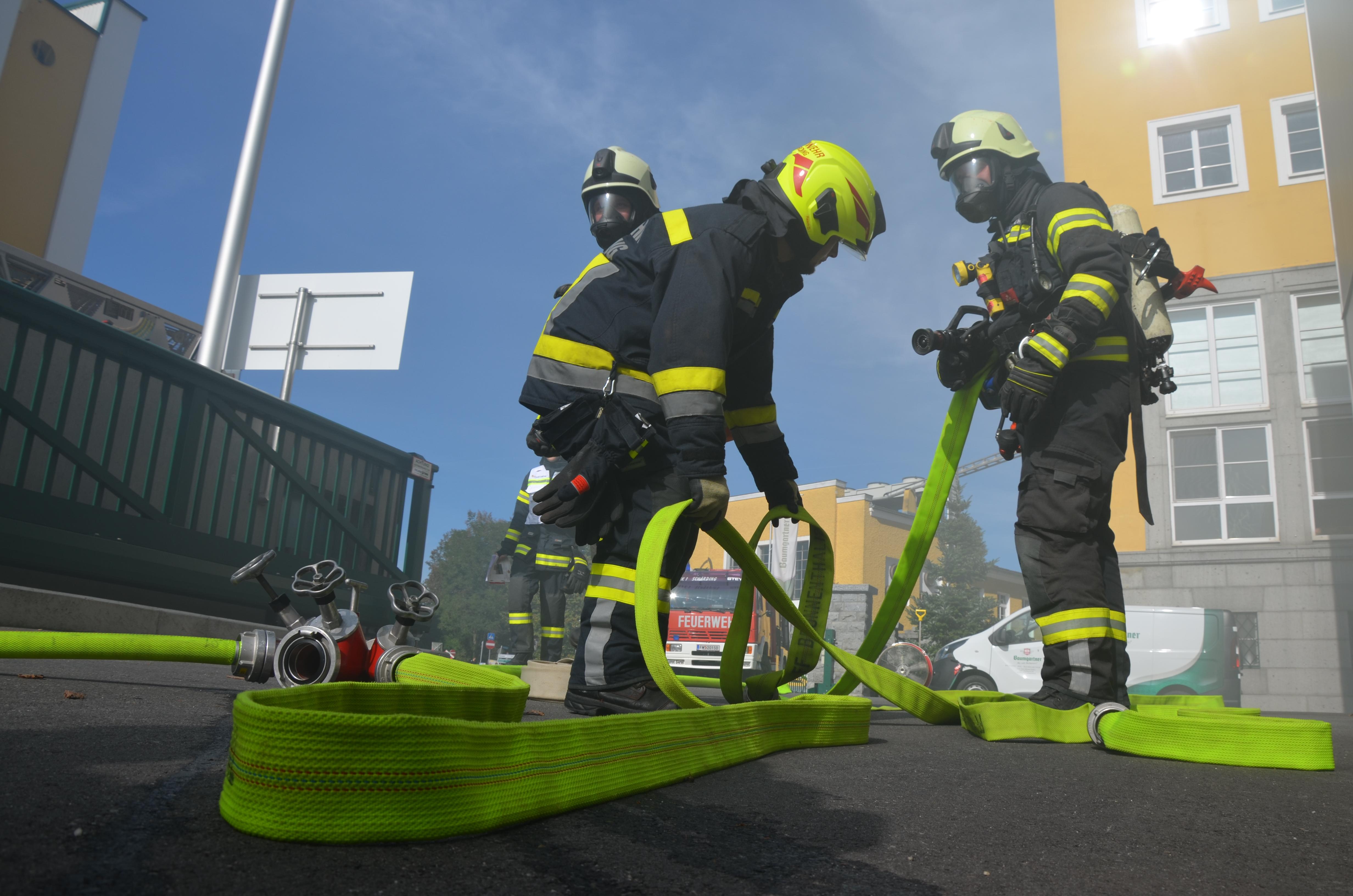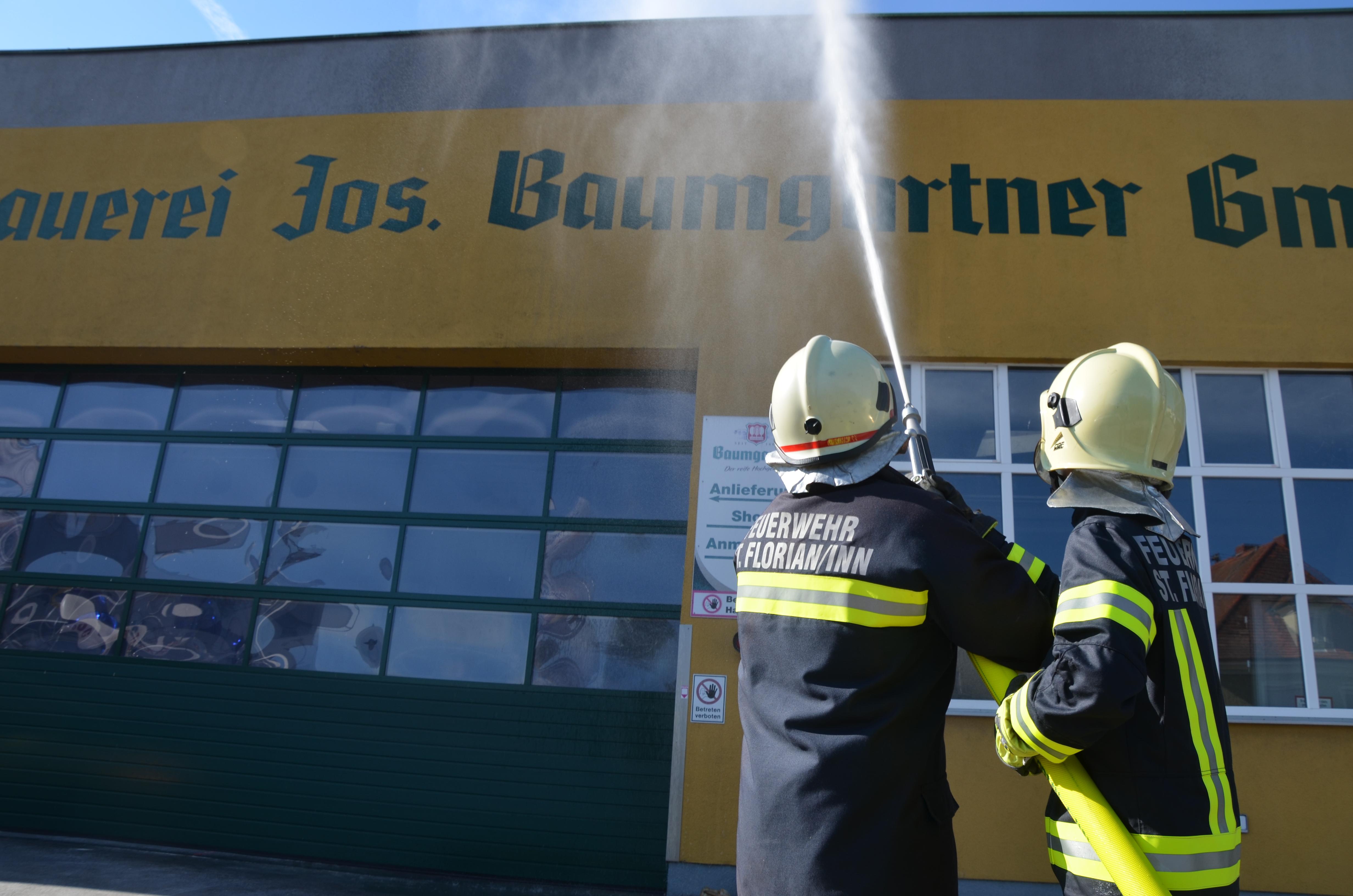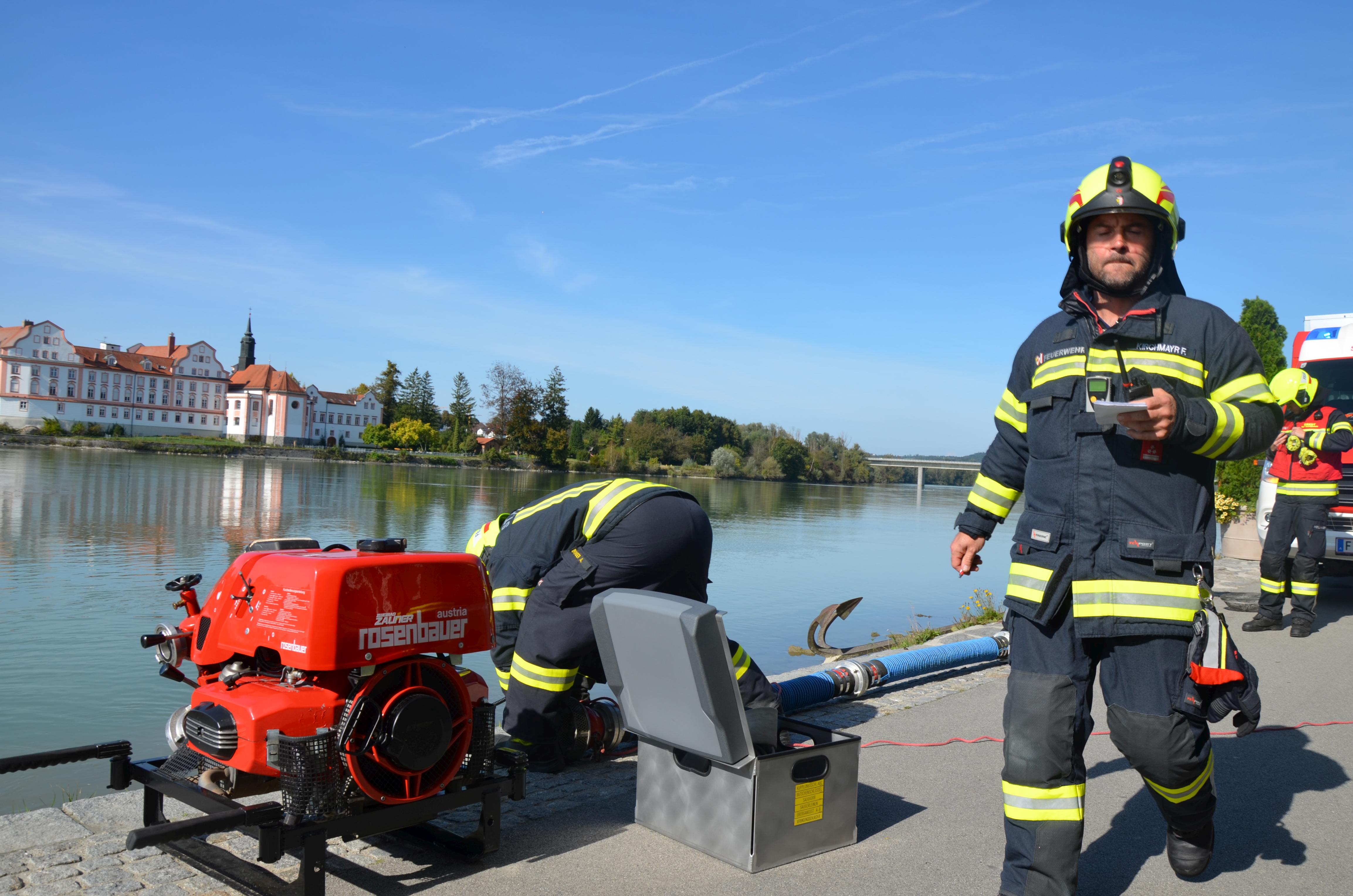 Zu dieser Übungsalarmierung wurde am 2. Oktober um 13:30 Uhr die Freiwillige Feuerwehr der Stadt Schärding, sowie in weiterer Folge 16 weitere Feuerwehren aus dem Bezirk, zu einer Großübung im Areal der Brauerei Baumgartner in Schärding gerufen. Übungsannahme war ein Großbrand im Innenbereich der Brauerei, wo neben der Brandbekämpfung ebenso 8 verletzte Personen von Feuerwehrkameraden unter Einsatz von schwerem Atemschutz teilweise über Drehleitern gerettet werden mussten. Die 209 eingesetzten Feuerwehr-Einsatzkräfte erprobten zusätzlich eine Wasserbeförderung mittels mehreren hundert Meter Schlauch von Inn und der Pram, damit die angenommene Brandbekämpfung sichergestellt werden konnte. „Man sieht, wie wichtig die zahlreichen Stunden an Aus- und Weiterbildung jedes Jahr für uns als Feuerwehr ist, damit jeder Handgriff im Ernstfall sitzt und die Zusammenarbeit zwischen den Kameraden, auch aus unterschiedlichen Feuerwehren, reibungslos funktioniert!“, so der Einsatzleiter und Kommandant der Freiwilligen Feuerwehr der Stadt Schärding Markus Furtner. Ebenso stellte auch die örtliche Gegebenheit eine besondere Herausforderung dar, in dem einerseits ein Übergreifen des Feuers auf den dicht verbauten Stadtkern zu berücksichtigen war und außerdem der Zentrumsverkehr großräumig umgeleitet und stark frequentierte Straßen, während dem Übungsszenario gesperrt werden mussten. Dies zeigt wiederum, wie wichtig auch die Zusammenarbeit mit allen Blaulichtorganisationen bei einem derartigen Großszenario ist. Auch die Polizei und das Rote Kreuz waren eingebunden und die Abläufe wurden hier geprobt. Insgesamt beteiligten sich 270 Einsatzkräfte an der Übung. Auch Bürgermeister Franz Angerer – der in ständigem Kontakt mit der Einsatzleitung war – bedankte sich bei allen eingesetzten Einsatzkräften: „Es ist mir ein besonderes Anliegen, jedem Einzelnen DANKE zu sagen, denn an einem so schönen Herbsttag hätte es für alle Beteiligten sicher auch eine andere Freizeitbeschäftigung gegeben – aber nein, 270 Männer und Frauen haben sich um die Sicherheit in unserer schönen Barockstadt Schärding gekümmert und das ist nicht selbstverständlich“.