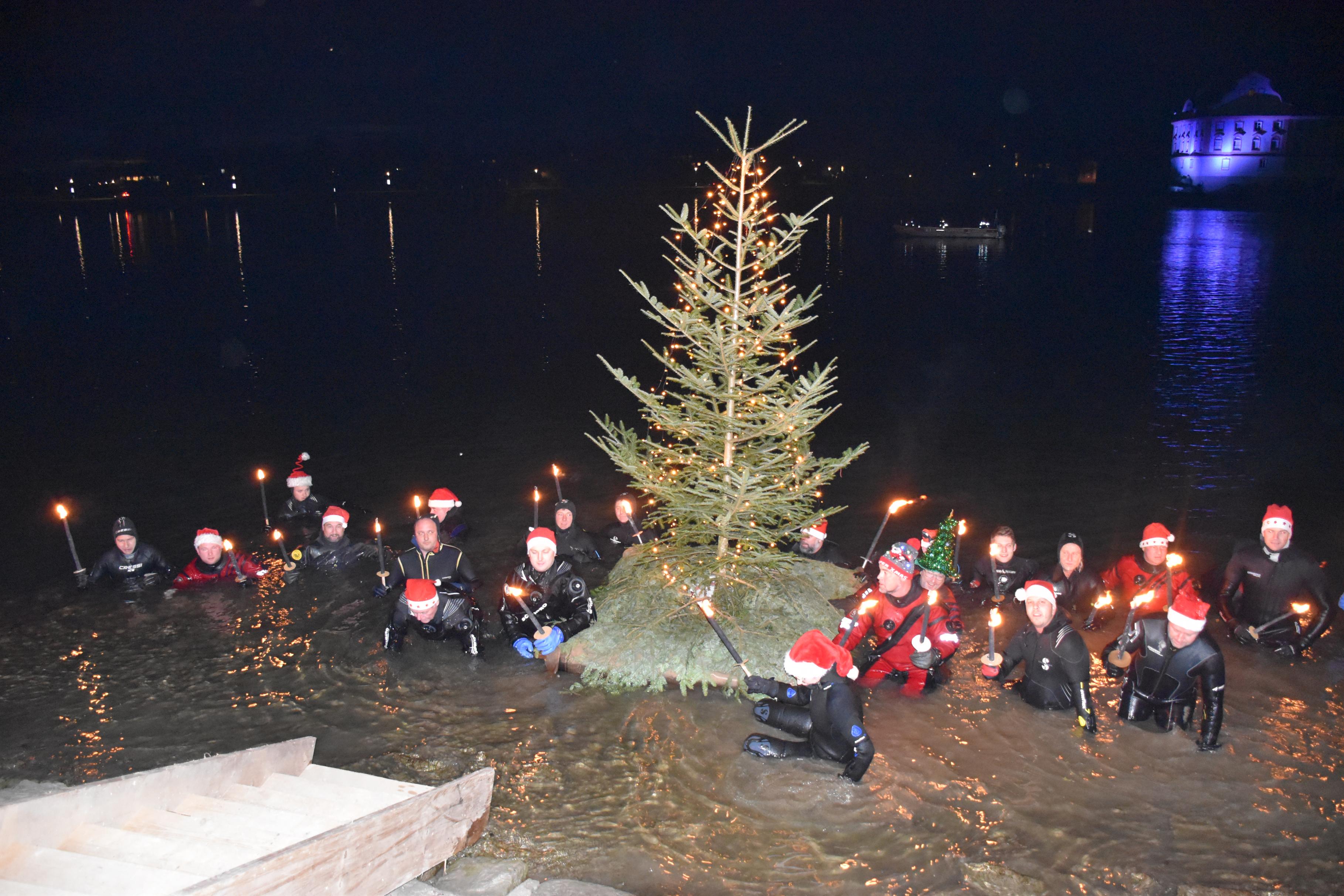Das Christbaumschwimmen ist der Dank der Taucher für ein unfallfreies Übungs- und Einsatzjahr und für die Besucherinnen und Besucher eine feierliche Einstimmung auf das Weihnachtsfest.