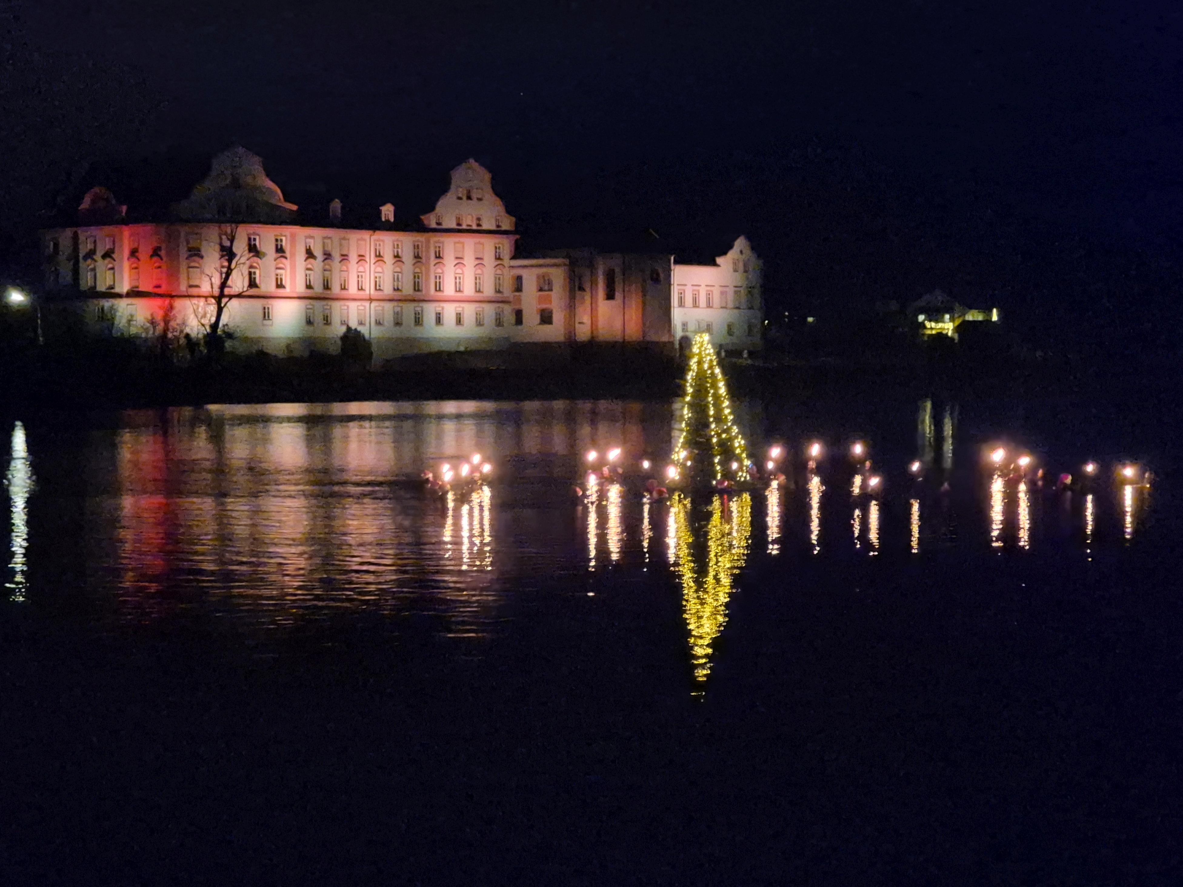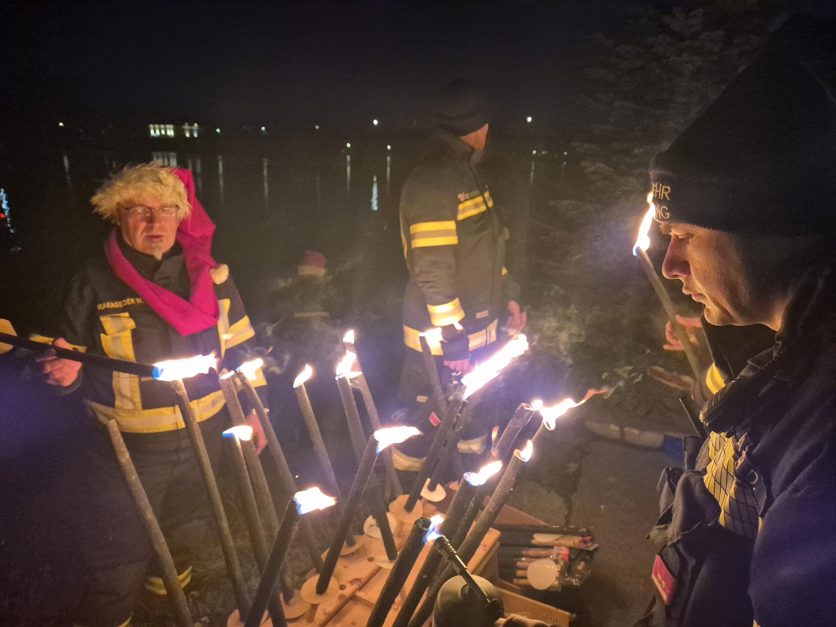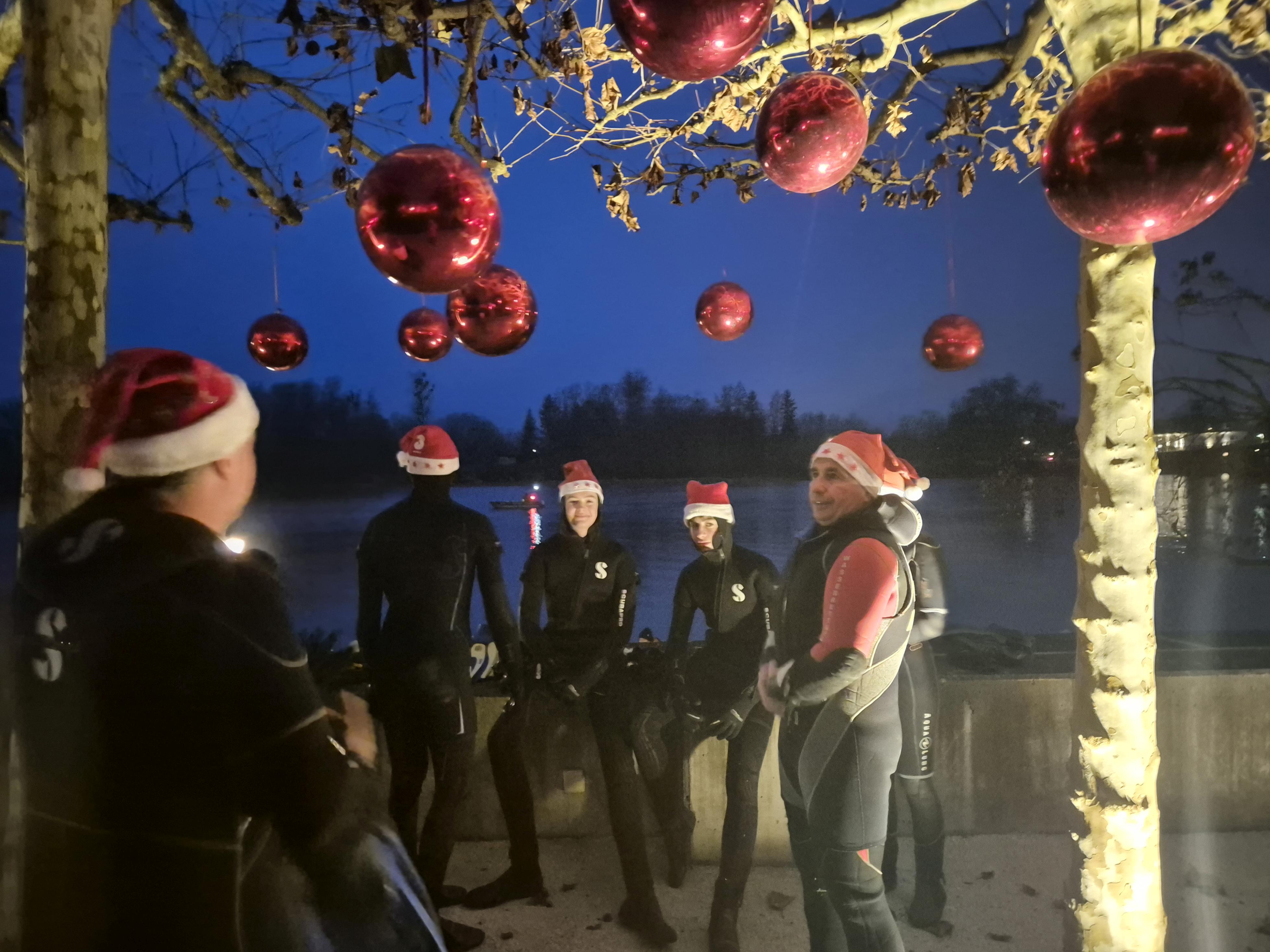 Am 20. Dezember ging im 41. Jahr des Bestehens das Christbaumschwimmen über die Bühne. Wie alle Jahre waren viele Personen an die Schärdinger Innlände gekommen, um der stimmungsvollen Veranstaltung beizuwohnen. Taucher der Feuerwehren Schärding, Ried und Grafenau schwammen mit Fackeln und einem beleuchteten Christbaum von der Innlände im Bereich des Gesundheitshotels Gugerbauer bis zum Wassertor entlang. Unterstützt wurden sie auch von einer Abordnung der Österreichischen Wasserrettung – Ortsstelle Schärding. Keine leichte und vor allem körperlich fordernde Aufgabe, wenn man bedenkt, dass die Wassertemperatur bei nur 4,3° Celsius lag. Insgesamt 26 Schwimmerinnen und Schwimmer stiegen in den kühlen Inn. Besonders hervorzuheben ist Bernhard Kirchmayr, welcher der einzige Schwimmer ist, der sowohl beim 1. Schwimmen 1984 dabei war und auch im Jahr 2025 ins Wasser gestiegen ist. Im Anschluss kam der Weihnachtsmann mit einer Zille über den Inn und brachte für die Kinder kleine Sackerl mit Süßigkeiten. Musikalisch umrahmt wurde die Veranstaltung von den Bläsern der Stadtkapelle Schärding. Grund für das Schwimmen ist der Dank an ein weiteres unfallfreies Tauchjahr. Das Christbaumschwimmen hat sich in Schärding mittlerweile als fester Bestandteil der Weihnachtszeit eingebürgert und hält die festliche Stimmung lebendig.