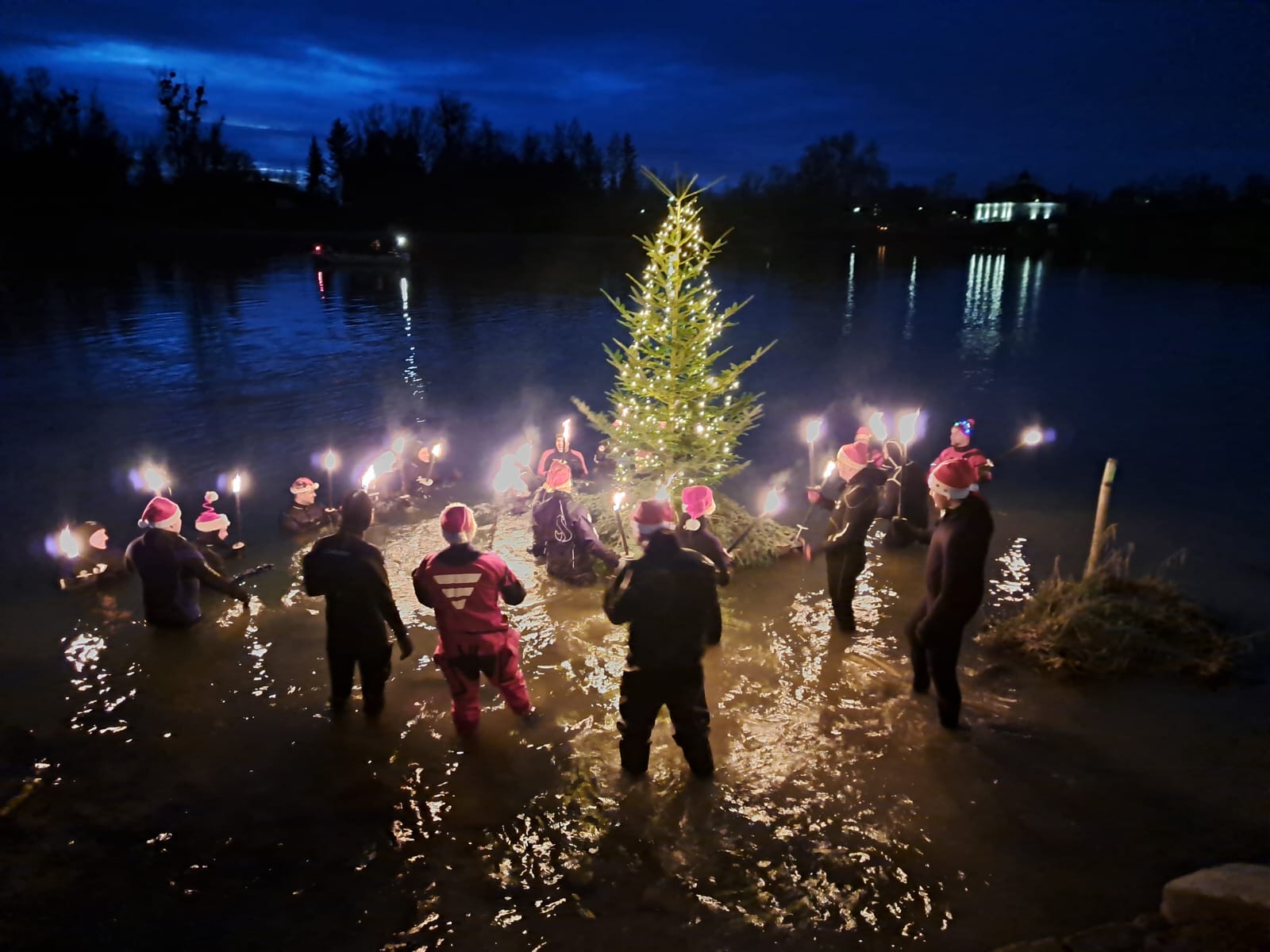 Das Christbaumschwimmen ist der Dank der Taucher für ein unfallfreies Übungs- und Einsatzjahr und für die Besucherinnen und Besucher eine feierliche Einstimmung auf das Weihnachtsfest.